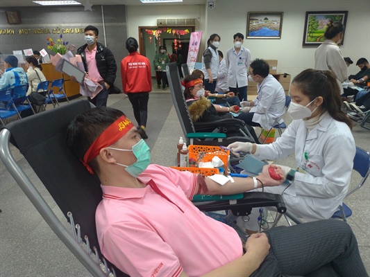 Đông đảo người dân đến hiến máu trong ngày khai mạc lễ hội Xuân hồng 2022
