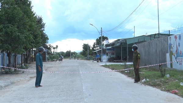 Lực lượng chức năng phong tỏa khu vực chợ tạm xã Hà Mòn, huyện Đăk Hà