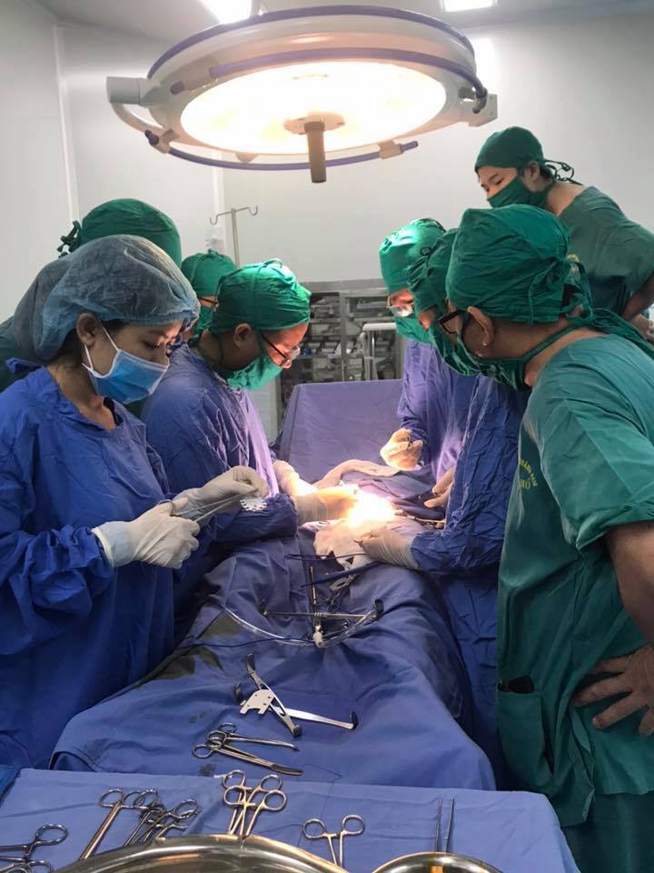 Ê kíp bác sĩ bệnh viện thực hiện ca phẫu thuật hơn tiếng đồng hồ