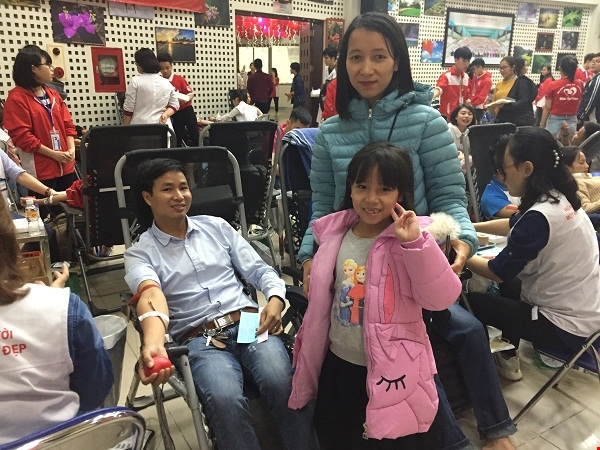Thay vì chọn địa điểm vui chơi để nghỉ ngơi cuối tuần, gia đình chị Nguyễn Thị Thủy và anh Nguyễn Xuân Hòa (Hà Nội) đã chọn Viện Huyết học – Truyền máu Trung ương làm điểm đến cuối tuần. "Rất nhiều người bệnh đang cần máu để điều trị, do đó nhân ngày nghỉ cuối tuần cả nhà rủ nhau đi hiến máu”, anh Hoà còn cho biết hai vợ chồng anh dẫn theo con gái cùng đi để giáo dục con về lòng nhân ái và cũng để bé tham gia một số hoạt động vui chơi trong khuôn khổ Lễ hội. Chị Thủy đã sẵn sàng để hiến máu nhưng đáng tiếc bị từ chối vì không đủ cân nặng: "Mình đã rất háo hức đến hiến máu, nhưng lại không đủ cân nặng. Về nhà mình sẽ tích cực chăm sóc sức khỏe để được hiến máu lần sau”.