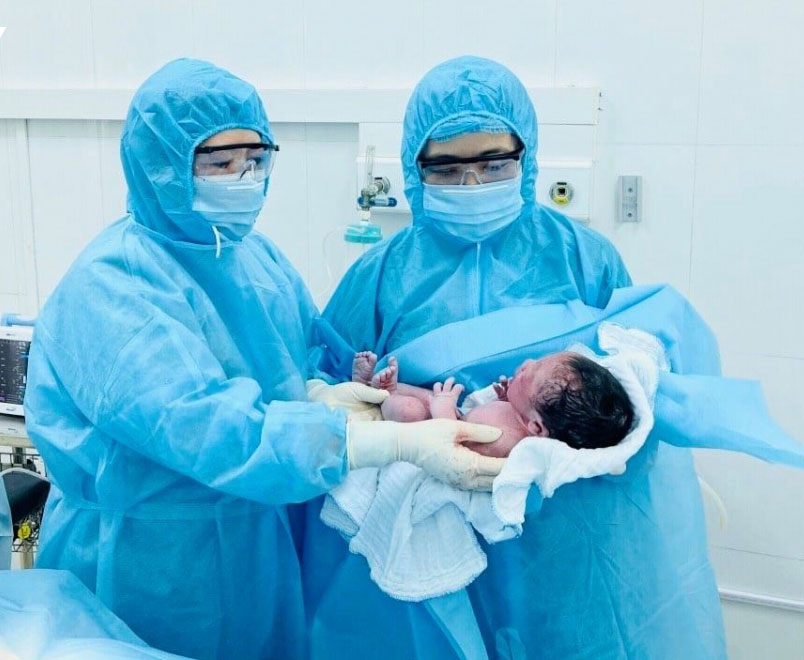 Ca mổ đẻ diễn ra thuận lợi, một bé trai khỏe mạnh nặng 3,3kg đã chào đời. Đây cũng là em bé đầu tiên được sinh ra bằng phương pháp đẻ mổ tại khu cách ly của Bệnh viện Sản - Nhi Lào Cai.