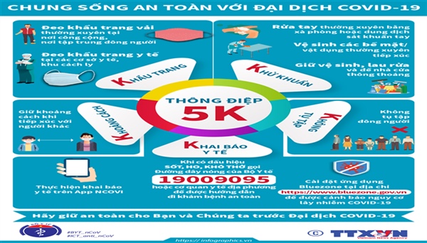 Bộ Y tế khuyến cáo "5K" chung sống an toàn với dịch bệnh (Ảnh minh họa)