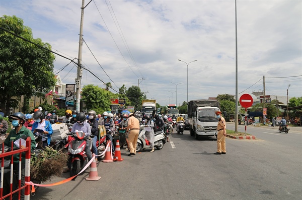 Việc người dân ùn ùn rời Đà Nẵng, di chuyển về Quảng Nam (chủ yếu bằng phương tiện xe máy) đã tạo nên cảnh ùn tắc kéo dài hàng trăm mét ngay tại chốt kiểm soát dịch đặt ở xã Điện Thắng Bắc, thị xã Điện Bàn, Quảng Nam - khu vực giáp ranh với địa bàn TP Đà Nẵng.