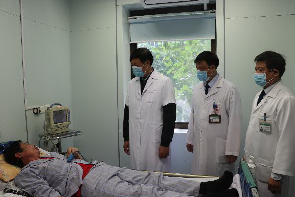 Thứ trưởng Đỗ Xuân Tuyên thăm hỏi bệnh nhân và kiểm tra khu vực labo xét nghiệm của Bệnh viện Bệnh Nhiệt đới Trung ương