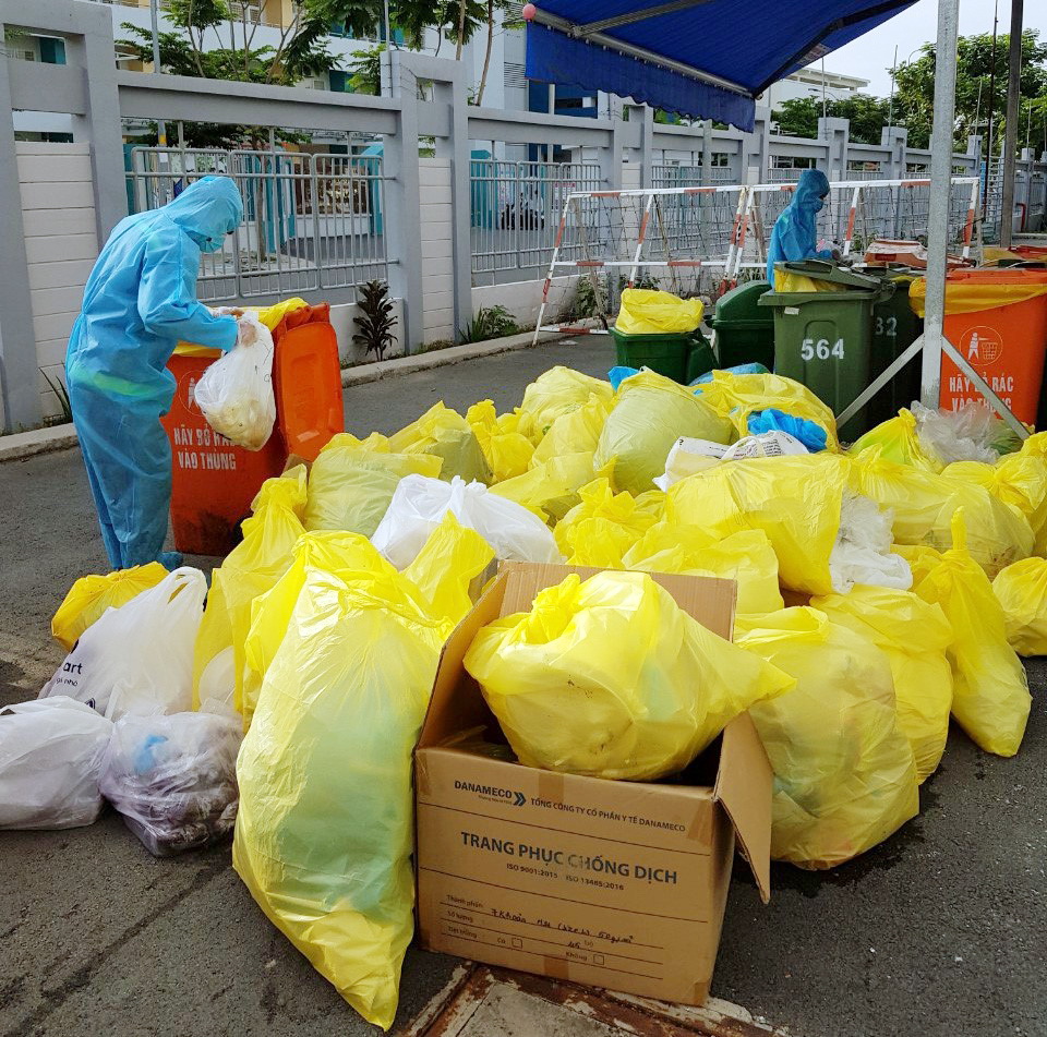 Theo đó, quy trình thu gom và xử lý loại rác thải y tế và rác thải từ khu vực cách ly có nguy cơ bị nhiễm virus SARS-CoV-2 được thực hiện theo điều kiện an toàn nghiêm ngặt. Cụ thể, rác thải phải được bọc kín trong thùng chứa hoặc túi chuyên dụng màu vàng, dán nhãn cảnh báo nguy cơ nhiễm bệnh. Công nhân thu gom của công ty được trang bị đồ bảo hộ an toàn. Rác trước khi thu gom để đưa lên xe vận chuyển chuyên dụng (thùng kín) phải thực hiện phun xịt khử khuẩn. Rác thải khi vận chuyển về Công trường xử lý rác Đông Thạnh tiếp tục phun xịt khử khuẩn một lần nữa trước khi đưa vào xử lý bằng công nghệ đốt ở nhiệt độ cao. Thậm chí, tro chất thải sau khi đốt xong phải được hoá rắn và chôn lấp tại bãi chôn lấp an toàn dành riêng cho chất thải nguy hại.