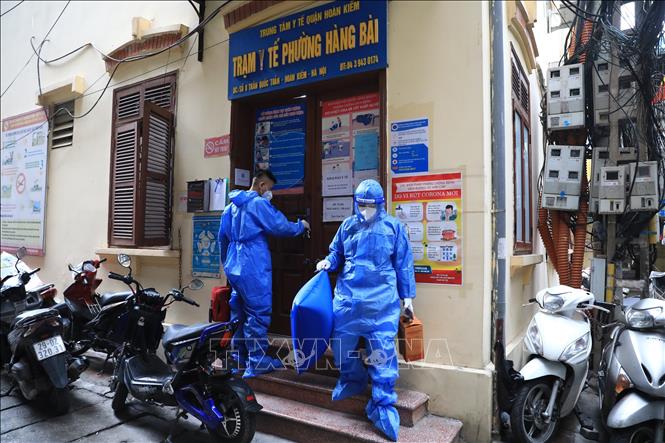 Đội tiêm lưu động phường Hàng Bài (quận Hoàn Kiếm, Hà Nội) chuẩn bị đến tận từng nhà, bảo đảm thời gian tiêm chủng cho mọi người dân.