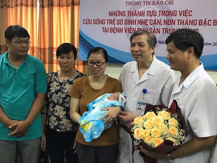 Ngày 7.6, PGS.TS Vũ Bá Quyết, Giám đốc Bệnh viện Phụ sản Trung ương cho biết, em bé chào đời với trọng lượng quá nhẹ, trong tình trạng hệ thống hô hấp chưa hoàn thiện và còn yếu ớt. Ngoài ra, bé còn có hiện tượng thở thoi thóp, tim rời rạc và phản xạ yếu. Ngay sau khi sinh, cháu bé đã được các bác sĩ tại Trung tâm Chăm sóc và điều trị sơ sinh điều trị, theo dõi, chăm sóc. Đến nay, cân nặng của bé đã đạt 2.650gr, bú tốt, vận động tốt và bé đã được BV cho xuất viện trở về sống với bố mẹ và gia đình cũng trong ngày 7.6.