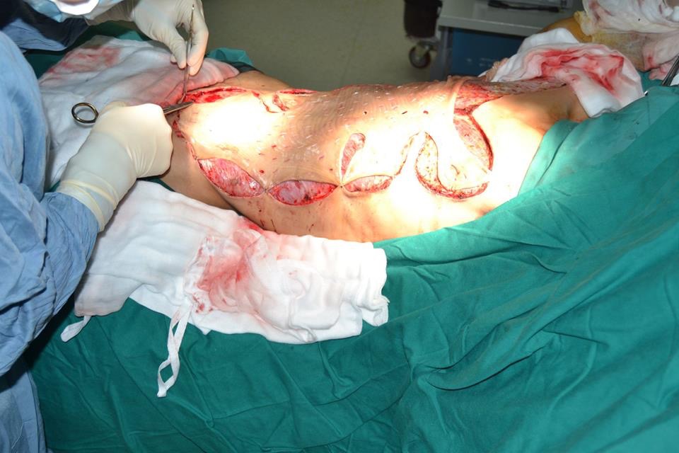 Theo bác sĩ Sùng Đức Long - người trực tiếp chủ trì ca mổ, đến 21h30 ngày 7.12, ca phẫu thuật cấp cứu đã hoàn tất, cơ bản số da bị bóc tách thu hồi được sau khi làm sạch, cắt lọc đã được ghép trở lại cho bệnh nhân; các tổ chức cơ, mạch máu dập nát đã được khâu phục hồi, các chỉ số sinh tồn của bệnh nhân đã tạm thời ổn định.