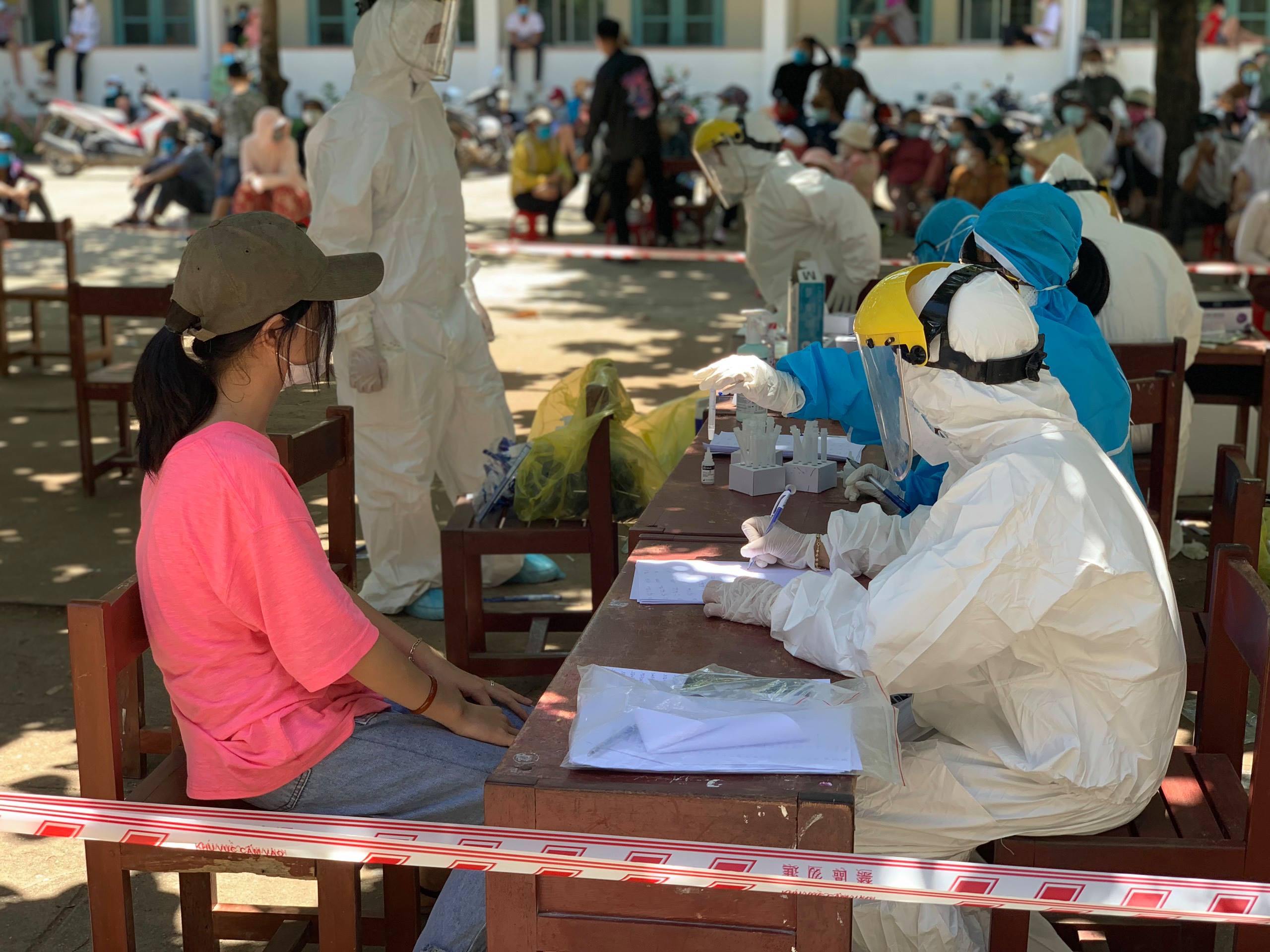 Lấy mẫu xét nghiệm diện rộng tại một khu vực dân cư tại Quảng Ngãi