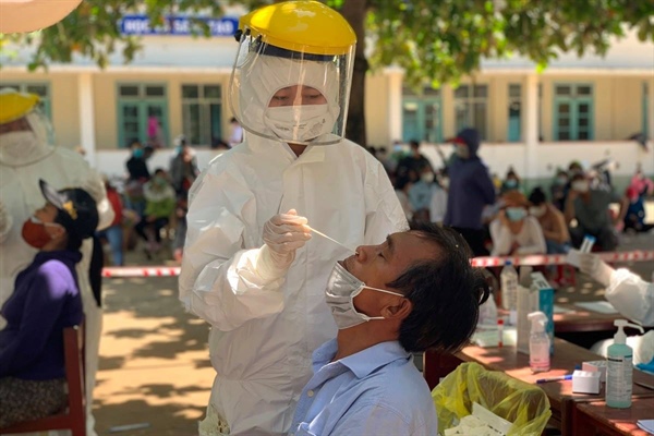 Lấy mẫu xét nghiệm tại một khu dân cư ở Quảng Ngãi
