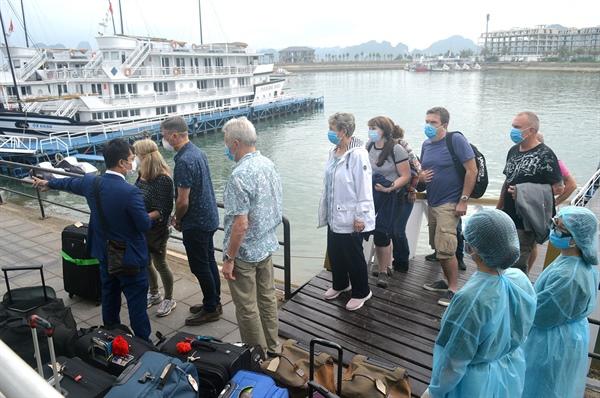 VHO- Trưa 7/3, tại Cảng tàu khách Quốc Tế Tuần Châu, TP Hạ Long, Sở Y tế tỉnh Quảng Ninh đón 14 trường hợp từ một tàu nghỉ đêm trên vịnh, trong đó có 4 trường hợp cùng chuyến bay với bệnh nhân Covid-19 thứ 17 tại Việt Nam.