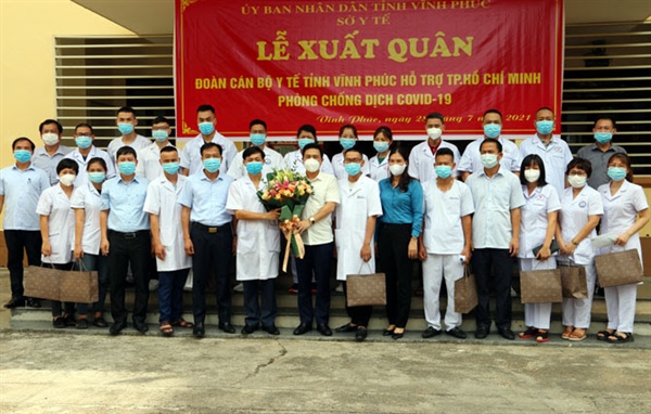 Trước đó, ngày 13.7, tỉnh Vĩnh Phúc đã cử đoàn cán bộ, nhân viên y tế 40 người vào tăng cường cho tâm dịch TP. HCM.