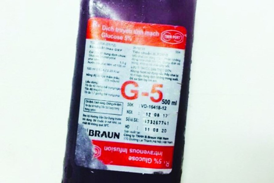 Vật liệu nano vàng được đựng trong một chai nước truyền.