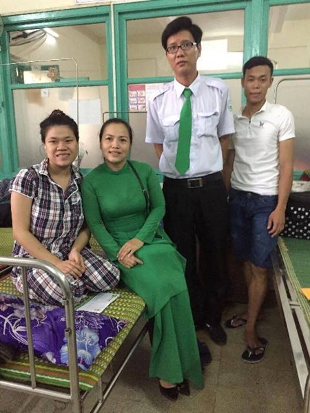 Tài xế Lê Phước Chính đến thăm và chia vui với gia đình sản phụ Trần Thị Thanh Ngọc tại bệnh viện