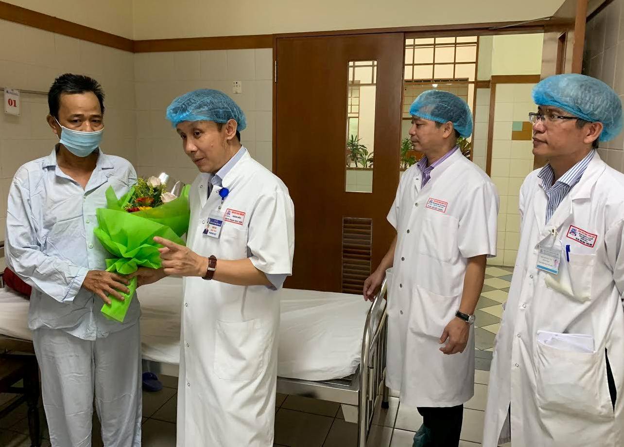 Lãnh đạo Bệnh viện Trung ương Huế tặng hoa và chúc mừng bệnh nhân ghép gan thành công được xuất viện