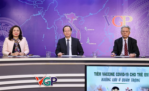 VHO- Chiều 18.2, Cổng TTĐT Chính phủ tổ chức tọa đàm với chủ đề “Tiêm vắc xin covid-19 cho trẻ em - Những lưu ý quan trọng”, với sự tham dự của các vị khách mời: TS. Nguyễn Sĩ Dũng, nguyên Phó Chủ nhiệm Văn phòng Quốc hội; PGS.TS. Dương Thị Hồng, Phó Viện trưởng Viện Vệ sinh dịch tễ Trung ương; PGS.TS. Trần Minh Điển, Giám đốc Bệnh viện Nhi Trung ương; PGS.TS.BS. Nguyễn Thanh Hùng, Giám đốc Bệnh viện Nhi đồng 1 (TPHCM).