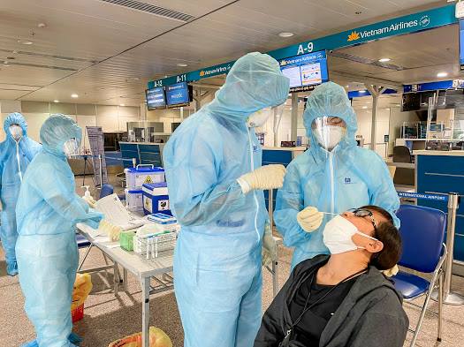 Thực hiện xét nghiệm Covid-19 tại sân bay Tân Sơn Nhất