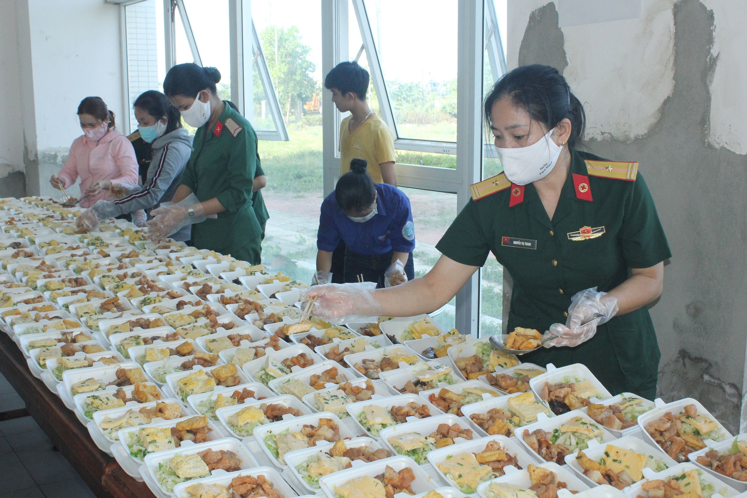 Chuẩn bị bữa ăn cho công dân ở khu cách ly T3 tại Thừa Thiên Huế. Ảnh: Trần Tình