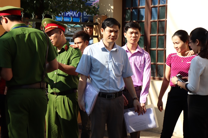 Phiên toà xét xử công khai, nhưng do diện tích phòng xử án hạn hẹp nên một số người dân đứng ngoài cổng theo dõi.