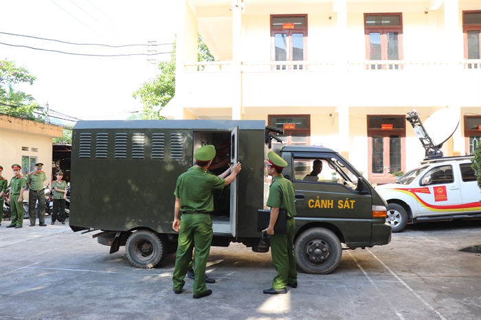 Ngay từ sáng sớm, gia đình các nạn nhân đã có mặt tại tòa. 7h30, xe đặc chủng chở 2 bị cáo là Bùi Mạnh Quốc và Trần Văn Sơn đến toà. 15 phút sau, bị cáo Hoàng Công Lương cũng xuất hiện tại cổng toà.