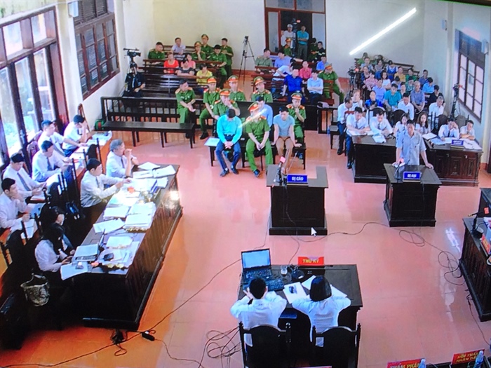 Các bị cáo tại phiên xử ngày 21/5/2018