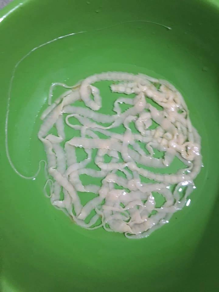 Con sán xơ mít dài 8m ký sinh trong cơ thể nam bệnh nhân L. sau khi xổ thành công. Ảnh: BV
