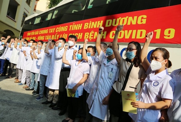 Theo đó, Đoàn cán bộ y tế hỗ trợ tỉnh Bình Dương gồm 20 người gồm 5 bác sĩ, 13 điều dưỡng, 2 kỹ thuật viên. Đoàn cán bộ y tế hỗ trợ tỉnh Bà Rịa - Vũng Tàu có 10 người, gồm 5 bác sĩ, 5 điều dưỡng chuyên ngành hồi sức cấp cứu. Đây đều là những thầy thuốc có kinh nghiệm, năng lực, trình độ đáp ứng yêu cầu nhiệm vụ chống dịch.