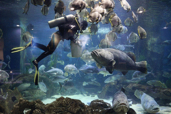 Không chỉ gây ấn tượng mạnh bởi kỹ năng lặn biển điêu luyện của các “nàng tiên cá” hay sự gan dạ của các “bảo mẫu”, tiết mục được đánh giá là đáng xem nhất này còn mang tới cho du khách cơ hội có 1-0-2 tận mắt quan sát tập tính săn mồi, thói quen xử lý thức ăn của loài cá được mệnh danh là “sát thủ” đại dương.
