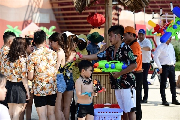 “Tôi từng đi té nước Songkran vài lần, họ tổ chức trên các tuyến phố với hoạt động chính là té nước. Ở đây, còn có âm nhạc tạo thêm phấn khích, các trò chơi ở cả trên bờ, dưới nước tạo nên sự đa dạng, chiến đấu không biết chán” – Anh Tú (khách du lịch tại Vinpearl Land Nha Trang) chia sẻ.