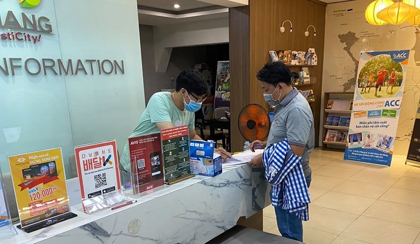 Du khách được hướng dẫn làm thủ tục bay tại Trung tâm hỗ trợ du khách Đà Nẵng