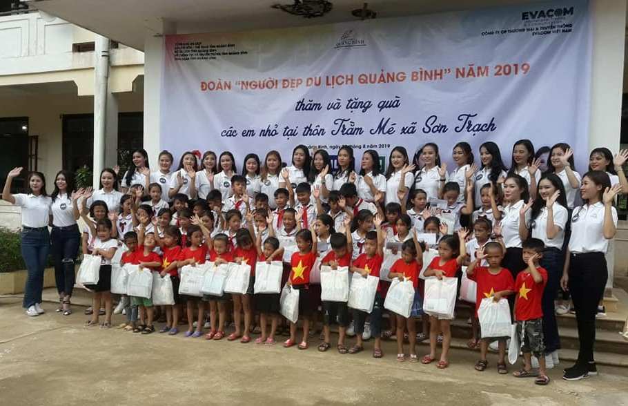Sáng ngày 23.8, đoàn “Người đẹp Du lịch Quảng Bình” năm 2019 đã đến trưởng Tiểu học số 2 Sơn Trạch (ở thôn Trằm Mé, xã Sơn Trạch, huyện Bố Trạch, Quảng Bình). Tại đây, các thí sinh đã thăm hỏi, động viên và tặng quà 125 suất quà và 10 chiếc xe đạp cho học sinh gặp phải hoàn cảnh khó khăn ở địa phương.