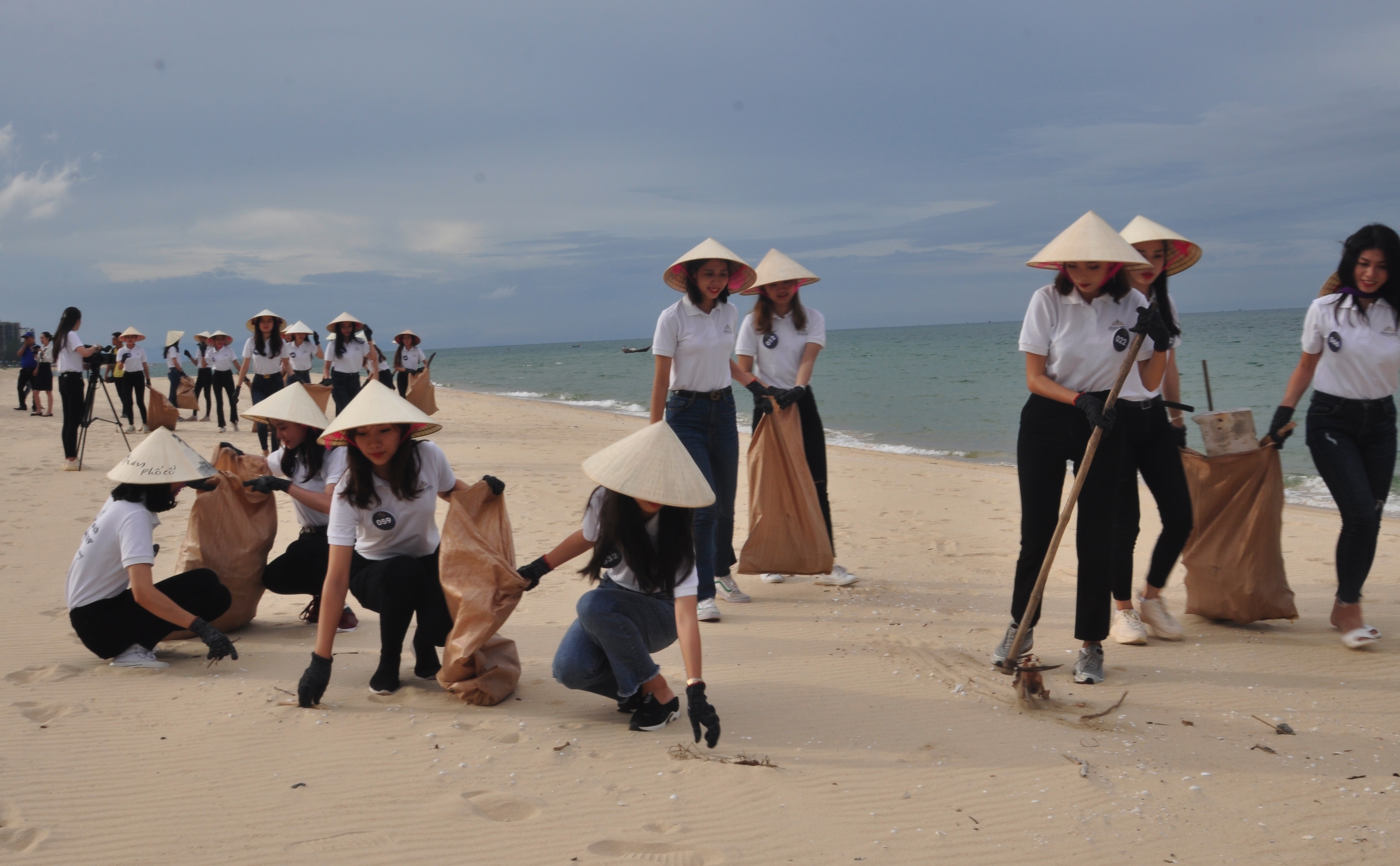Những "Người đẹp Du lịch Quảng Bình" nhặt rác ở bờ biển xã Bảo Ninh, thành phố Đồng Hới