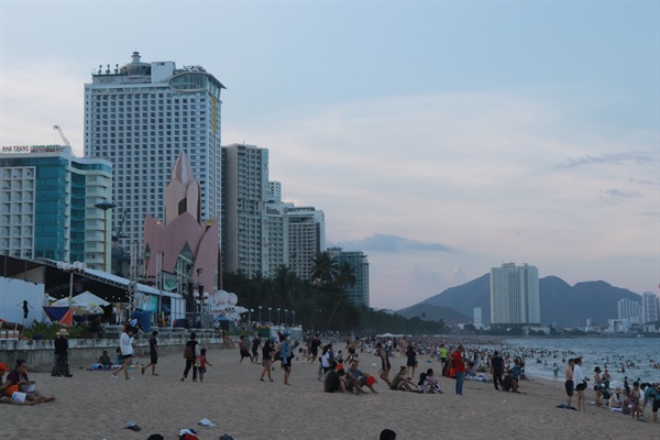 Khách du lịch đông kín trên bãi biển Nha Trang