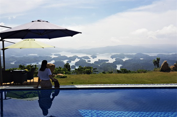 Du khách ngắm hồ Tà Đùng từ một Homestay