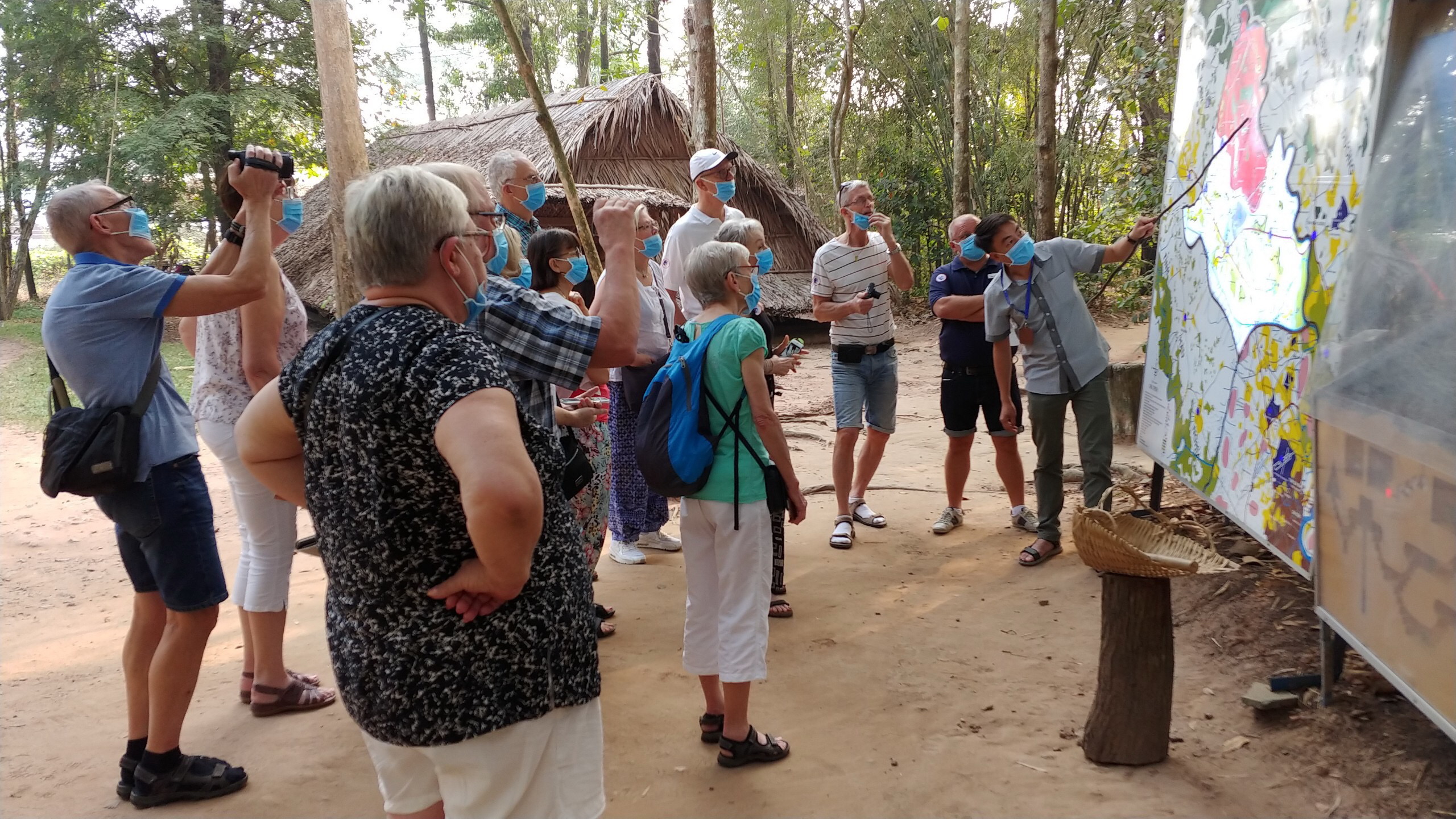 Du khách tham quan Khu di tích lịch sử Địa đạo Củ Chi được phát khẩu trang miễn phí nhằm phòng, chống dịch