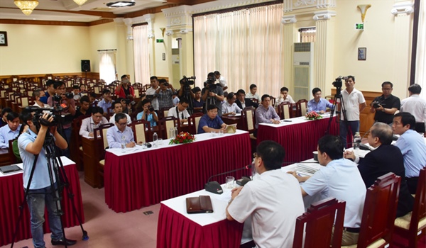 Đông đảo phóng viên tại buổi họp báo của UBND tỉnh Thừa Thiên Huế