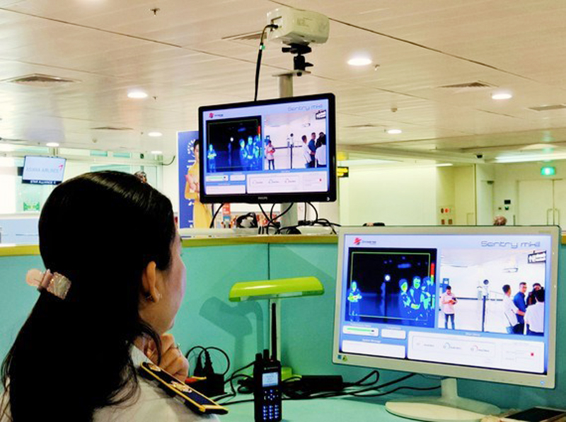 Hệ thống giám sát y tế kiểm tra thân nhiệt du khách tại sân bay Tân Sơn Nhất Ảnh: SỞ Y TẾ TP.HCM