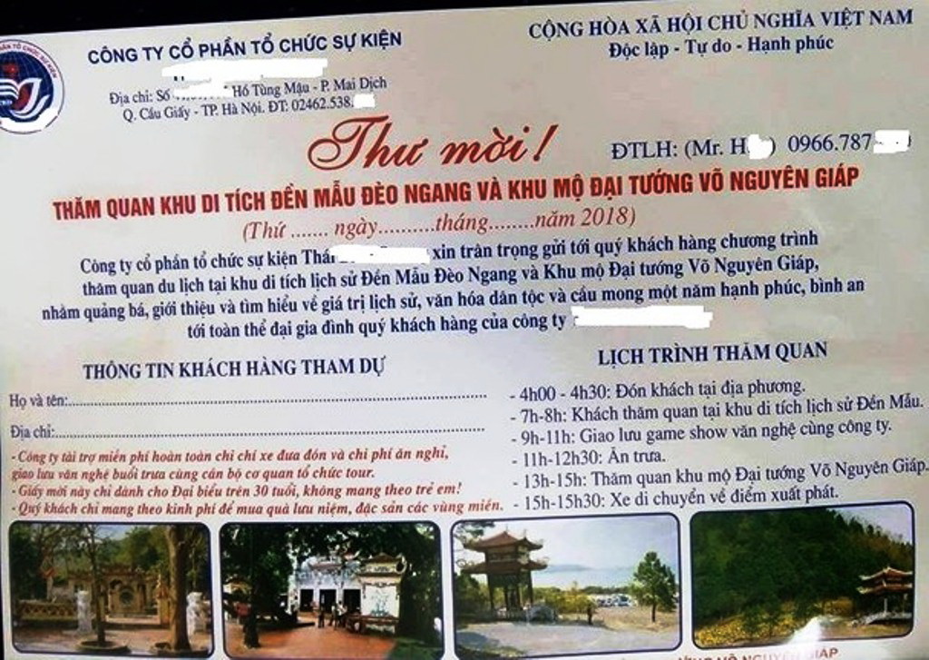 Lời mời chào du lịch miễn phí từ một doanh nghiệp tại Hà Nội Ảnh: QUANG ĐẠI