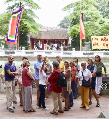 Chính sách visa thông thoáng hơn đã giúp Việt Nam tăng 4 bậc, nhưng theo báo cáo, Việt Nam vẫn chưa thực sự ưu tiên cho du lịch. Trong ảnh: Du khách quốc tế tham quan Văn Miếu - Quốc Tử Giám Hà Nội Ảnh: TẠ DŨNG