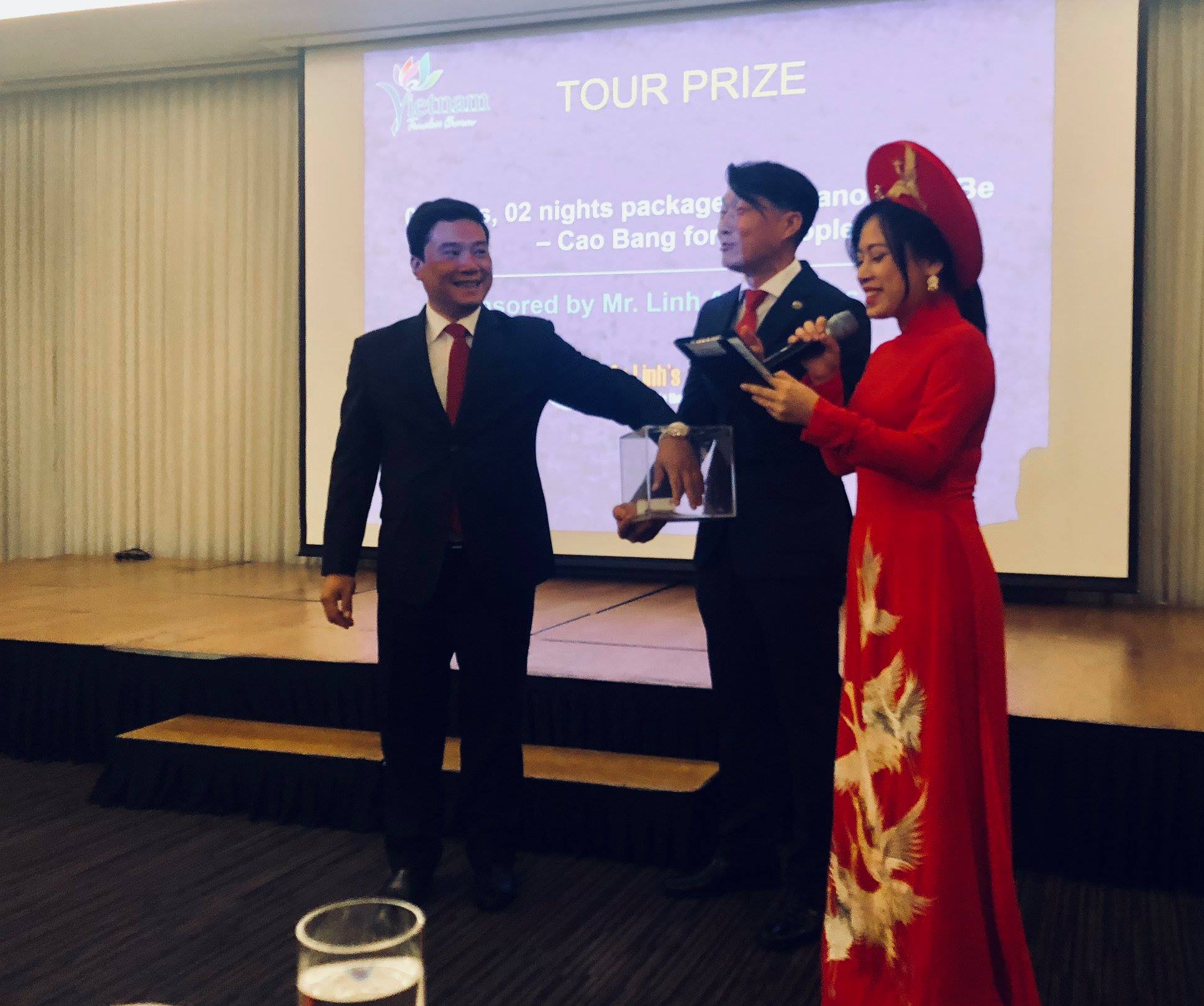 Ông Nguyễn Thái Bình, Chánh Văn phòng Bộ VHTTDL đại diện lên bốc thăm và trao giải thưởng may mắn cho khách Hàn Quốc chuyến đi thăm trọn gói Việt Nam