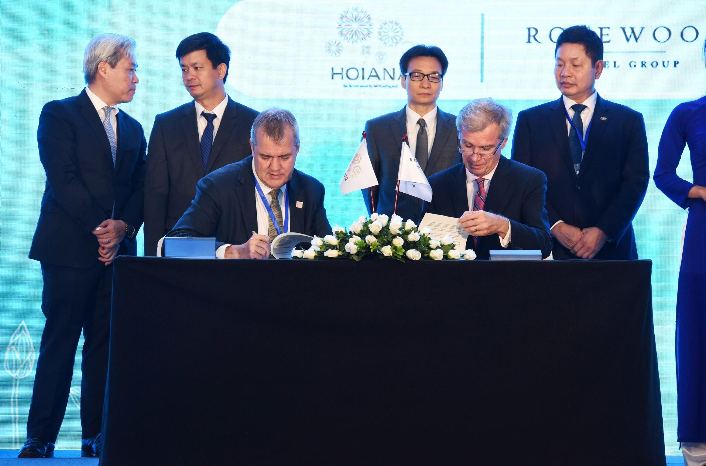 Lễ ký bản thỏa thuận dịch vụ quản lý khách sạn của Công ty TNHH Phát triển Nam Hội An và tập đoàn khách sạn Rosewood