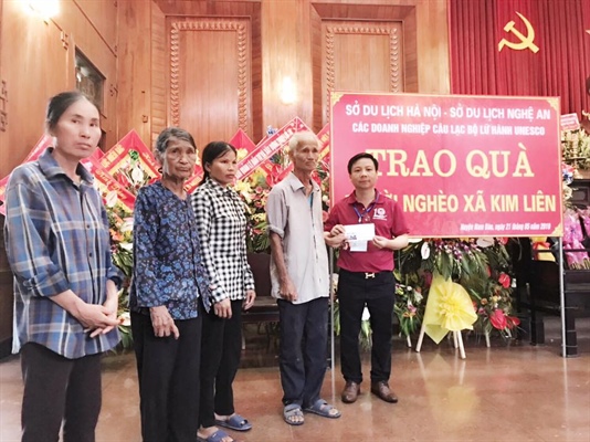 Cũng trong dịp này, Đoàn khảo sát của Sở Du lịch Hà Nội, CLB Lữ hành UNESCO Hà Nội đã đến dâng hương tại Khu di tích Kim Liên và trao 4 suất quà cho 4 gia đình chính sách tại huyện Nam Đàn.