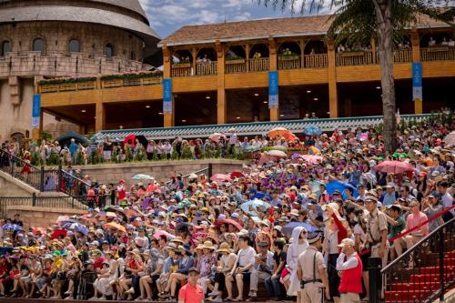 Khuôn viên với sức chứa 3000 người được lấp kín toàn bộ chỗ, thậm chí, nhiều du khách phải đứng tràn sang hai cánh sân khấu để theo dõitrọn vẹntất cả các màn trình diễn…..
