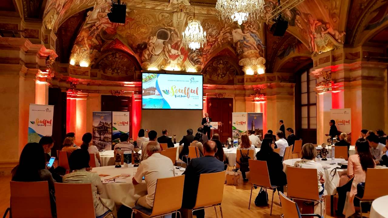Ngày 22.6, đoàn đã tổ chức Chương trình giới thiệu du lịch Việt Nam (roadshow) tại thủ đô Vienna của Áo. Đây là lần đầu tiên du lịch Việt Nam hiện diện chính thức ở Áo và sự kiện diễn ra tại Cung điện Niederösterreich rất nổi tiếng của thủ đô Vienna. Cung điện Niederösterreich được xây dựng vào cuối thế kỷ 15, từng là Tòa Hạ viện của Áo cho đến năm 1848. Sau đó, nơi đây trở thành một trong những công trình văn hóa, lịch sử và là nhà hát của những chương trình biểu diễn lớn tại Vienna. Với ý nghĩa lịch sử và văn hóa lâu đời của Cung điện này, việc Chương trình giới thiệu du lịch Việt Nam được tổ chức tại đây cũng tạo được một dấu ấn đặc biệt cho Du lịch Việt Nam.