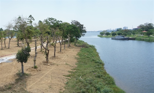 Khu vực bờ Đông cồn Dã Viên đang được chỉnh trang thành công viên văn hóa phục vụ cộng đồng (trong ảnh là hai mặt giáp sông Hương)