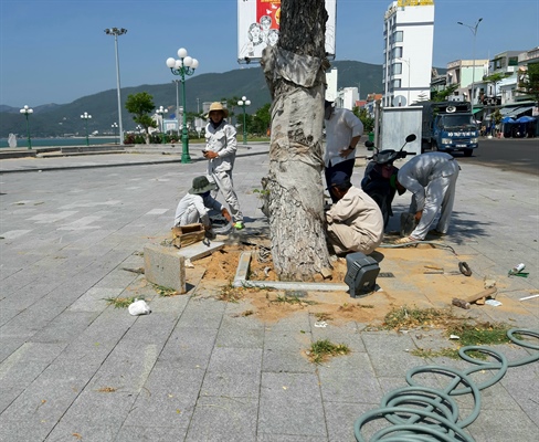 Từ phản ánh của người dân, chúng tôi tìm đến Công viên biển Xuân Diệu và nhận thấy nhiều hạng mục của công trình đã bộc lộ hư hỏng, mặt đá lát nền sụt lún vỡ kết nối, cột đèn điện trở thành thùng chứa rác, nhiều chỗ gạch đá lát vỡ toác… Một số người dân cho hay, hệ thống đèn chiếu sáng của công trình đang bị hư hỏng, nguy cơ rò rỉ điện gây nguy hiểm cho người dân, du khách khi đến công viên vui chơi và tắm biển.