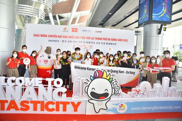 Tham dự lễ đón chuyến bay Vietjet Air đầu tiên đón khách từ thị trường Hàn Quốc đến Đà Nẵng có đại diện lãnh đạo Sở Du lịch, Cảng Hàng không Quốc tế Đà Nẵng, Công ty Cổ phần Đầu tư Khai thác Nhà ga Quốc tế Đà Nẵng và Hãng hàng không Vietjet Air. Không khí lễ đón sôi động với sự xuất hiện của Mascot du lịch Đà Nẵng và tiết mục nhảy chào mừng do chính đội ngũ tiếp viên Vietjet Air biểu diễn. Ngoài những bó hoa dành tặng cho 20 vị khách đầu tiên, mỗi hành khách trên chuyến bay VJ879 được du lịch Đà Nẵng dành tặng phần quà lưu niệm như móc khóa, ấn phẩm du lịch, bánh khô mè đặc sản và bộ sản phẩm khẩu trang, gel sát khuẩn tay...