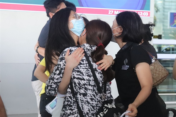 Bên cạnh những vị khách du lịch châu Âu mang tâm trạng phấn khích khi quay lại khám phá Đà Nẵng, cùng có nhiều hành khách trở về vòng tay người thân sau bao nhiêu năm xa cách do dịch bệnh. Những giọt nước mắt “dành cho ngày gặp lại” của nhiều gia đình khiến những người xung quanh đều xúc động,, trước niềm vui đoàn tụ.