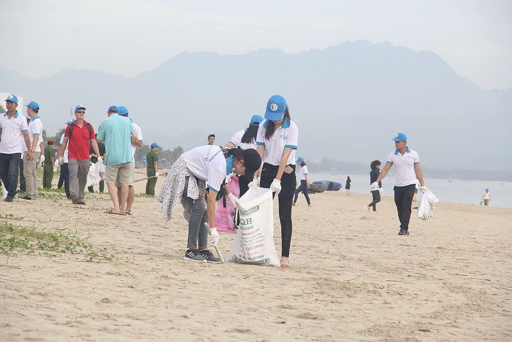 Đại biểu GEF 6 chung tay thu gom rác trên bờ biển Đà Nẵng