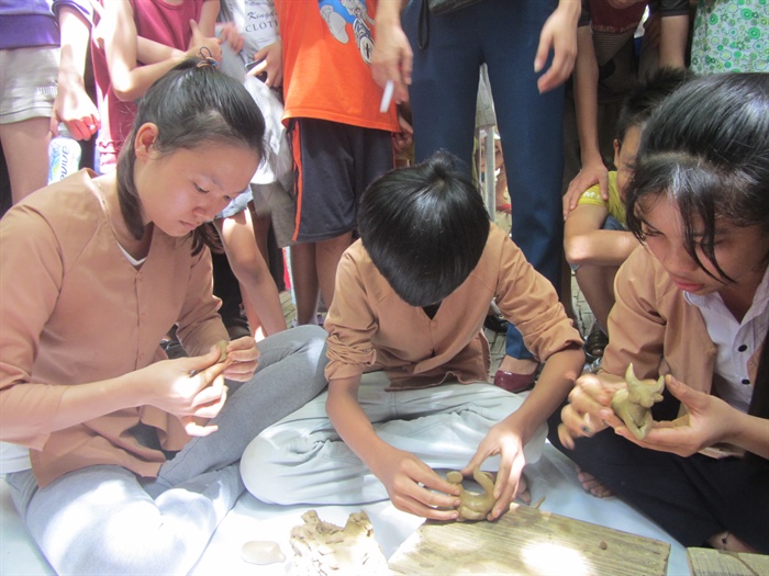 Các bạn trẻ ở Thanh Hà đang học nghề làm gốm